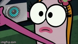 Angela is an adventurous girl who likes taking risks, like jumping from one tank to another without a parachute, dancing on the tables of restaurants, etc. ("Send Me an Angel Fish"). She loves video games and spends all day playing them. She is also similar to Oscar in many ways.