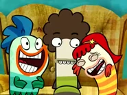 Milo and Bea try to get Oscar laughing, and Milo tells him he should just pretend. But then Oscar gets obsessed with pretend laughing and accidentally laughs at Jocktopus, who decides to beat him up.