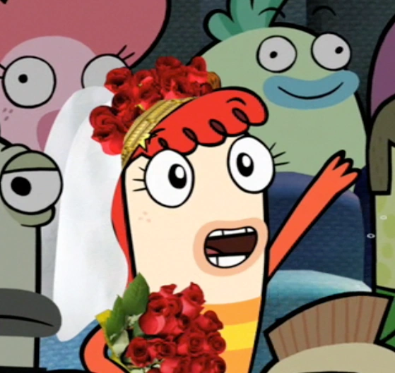 When Bea was in her locker, Oscar appeared with a bouquet of flowers and a box of chocolates, but he got so scared and nervous that when Bea saw him, he ran away, saying, "WHAT?!" ("The Tale of Sir Oscar Fish").